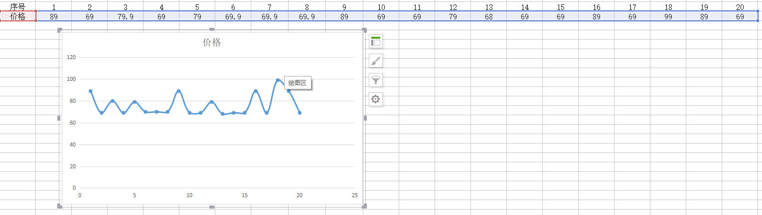 另外,如果我们是天猫卖家,我们就统计天猫的价格数据,如果我们是淘宝卖家,我们就统计淘宝的价格数据,我们可以统计前前5页或者更多的价格数据,通过统计我们可以发现这些价格的相同点和不同点。这里我们就选择天猫的店铺牛仔裤女前20名的价格进行统计,然后用Excel表格的绘图功能制的图表如下